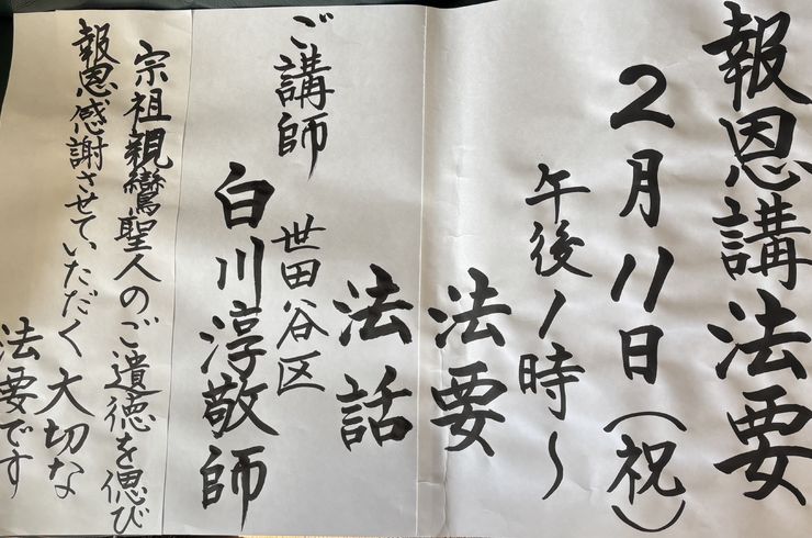2月11日(水祝)午後1時より報恩講法要が勤まります。